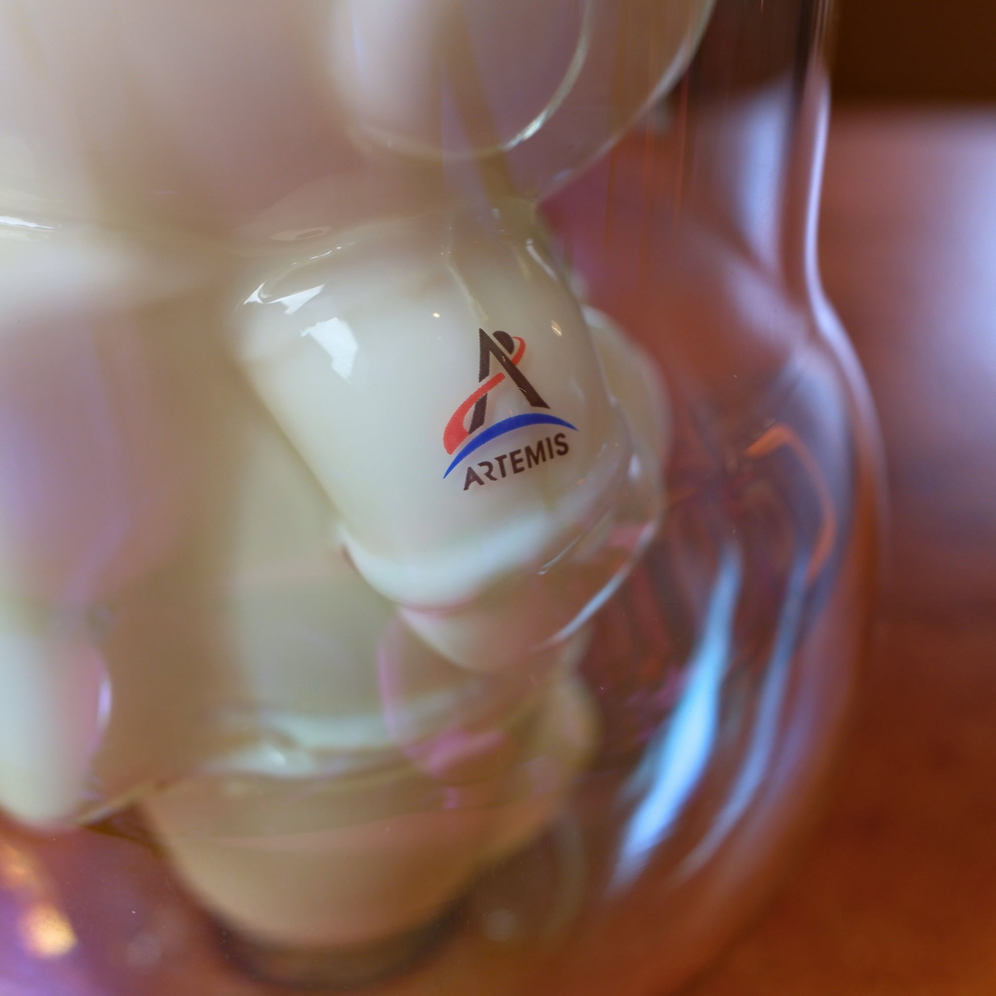 デフォルメされた宇宙飛行士のシルエットながらも、左肩にはアメリカ国旗、右肩にはアルテミス計画のマークが施されるなど徹底ぶり。