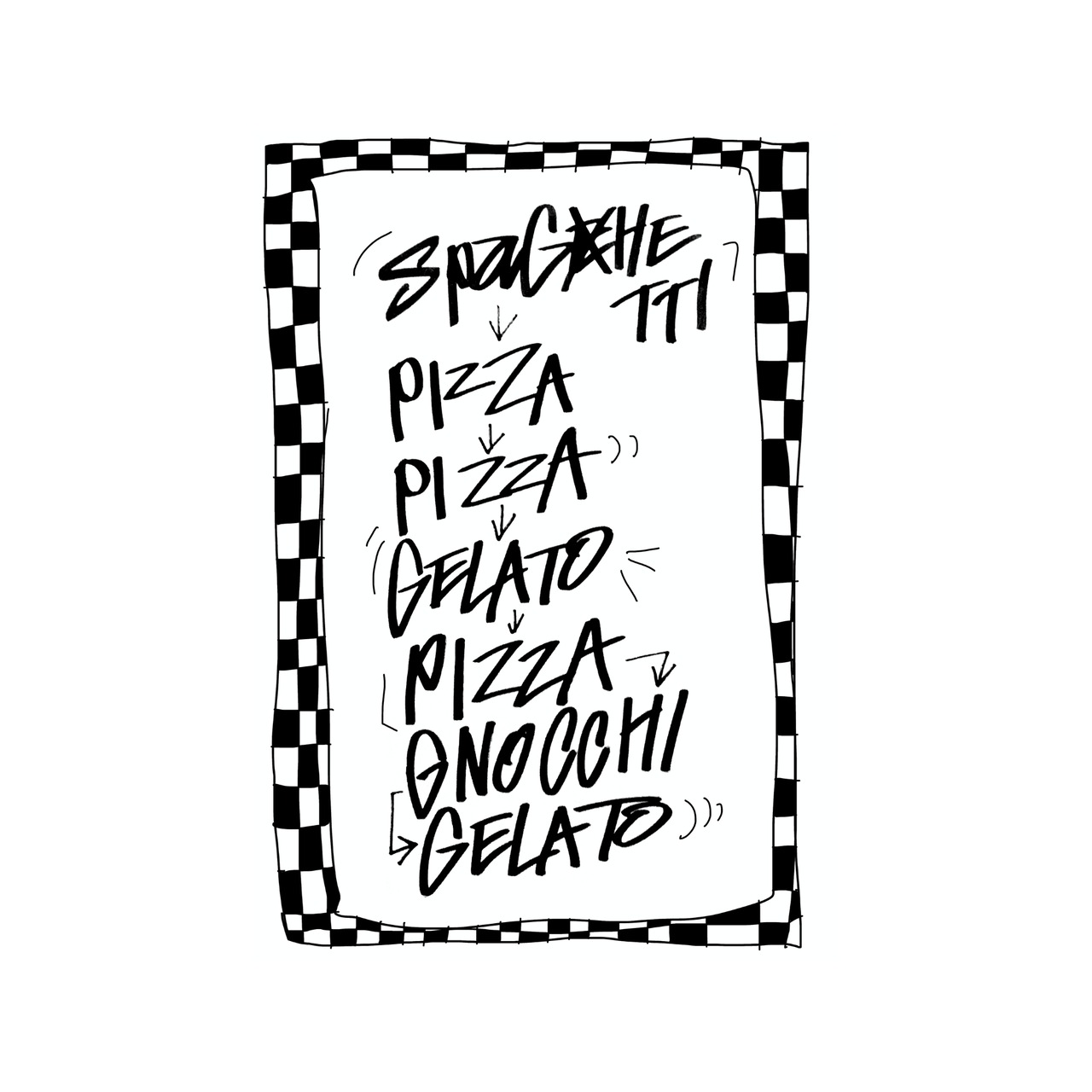 左胸はスイスで食べて美味しかったものリストをプリント。