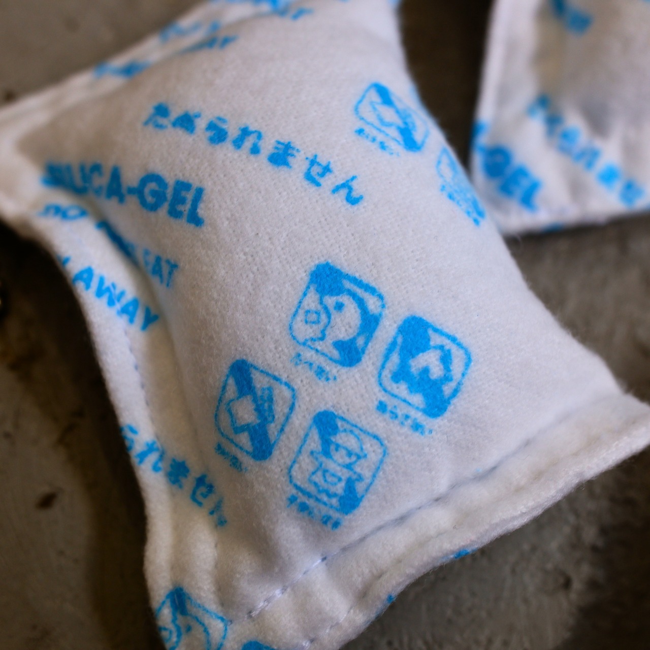 味海苔やその他、乾燥した食品などでおなじみの和製シリカゲルを模したキーホルダー。