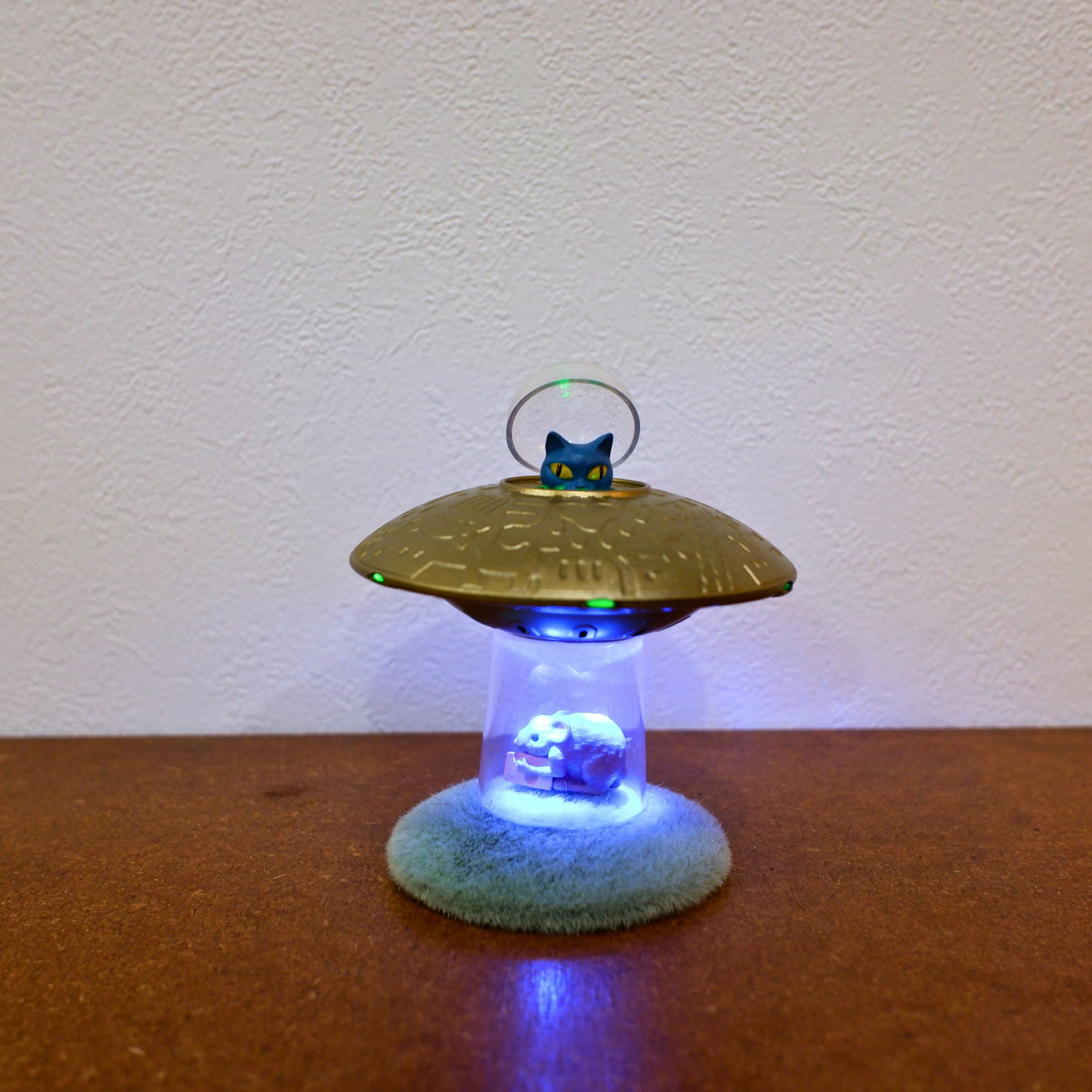 コックピットを開けてエイリアン&ネコを押すと、光と音のエフェクトで“キャトルミューティレーション”を再現するSFトイ。