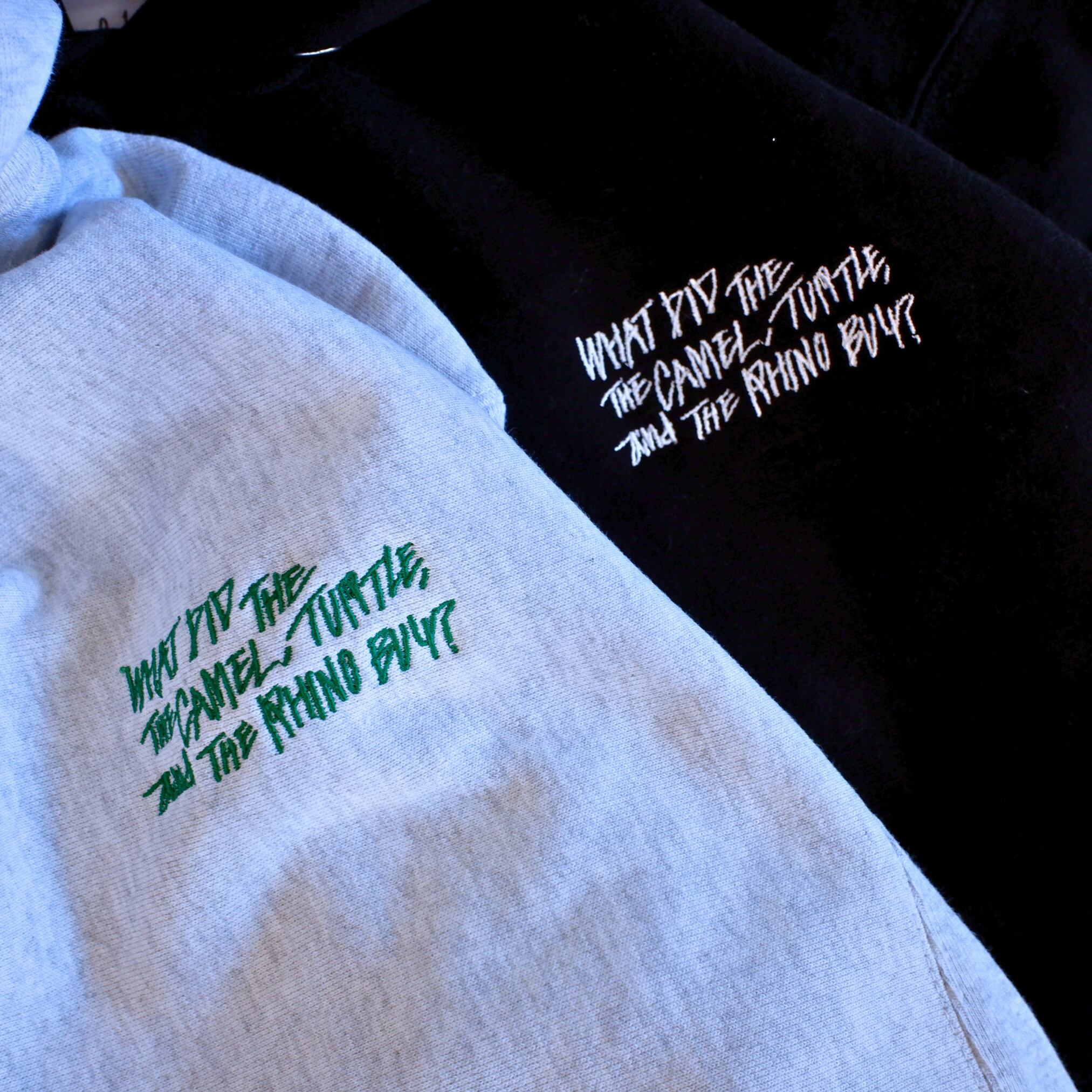 左胸に問題を刺繍。右腕にはヒント!パンツには答えが。