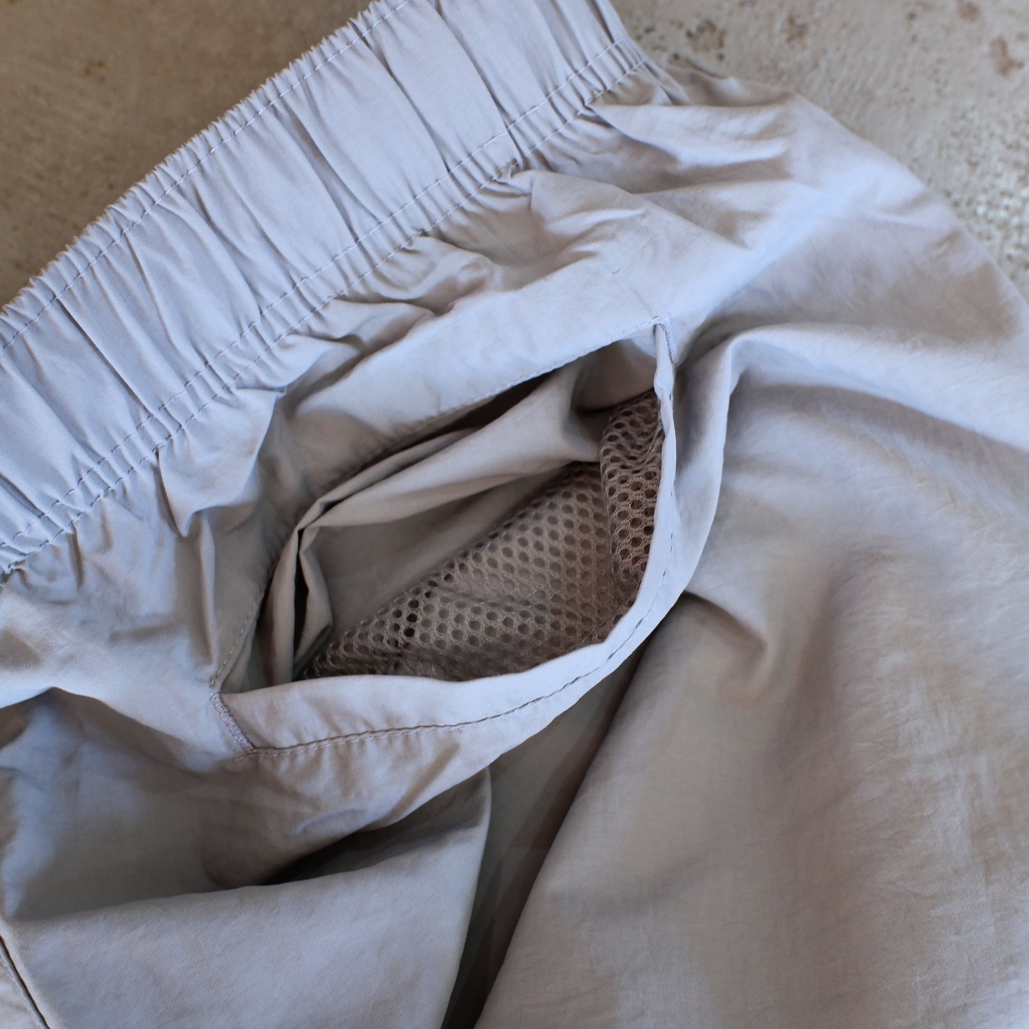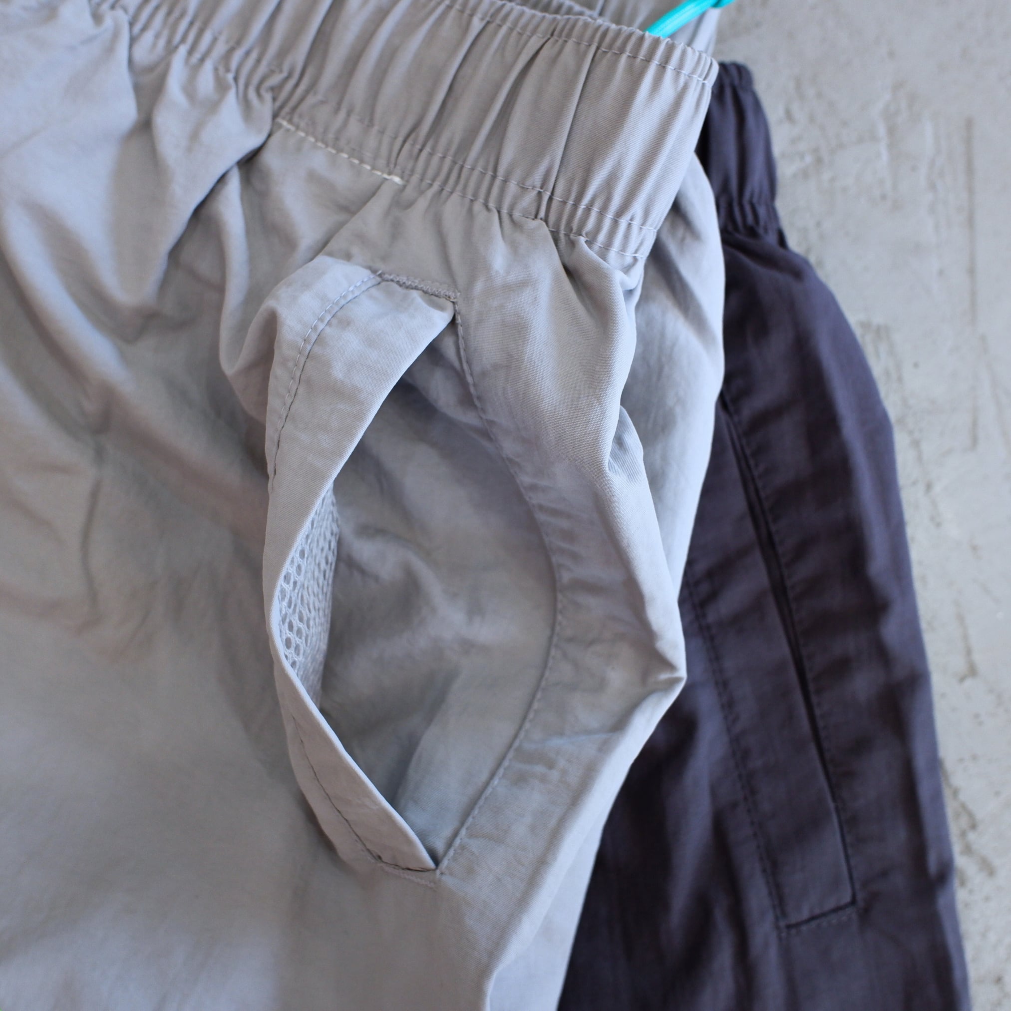 タフなナイロンをコットンのように加工して織り込んだ、やわらかな生地のパンツ。