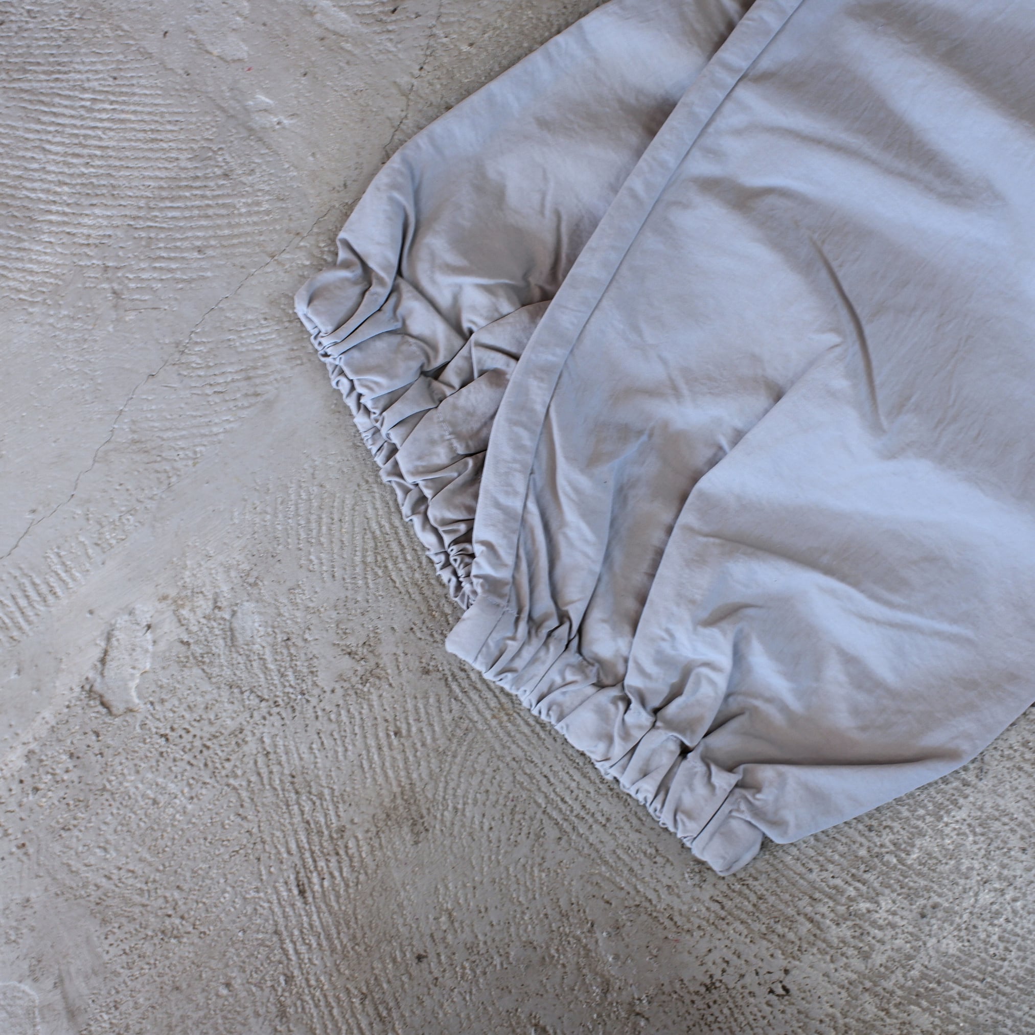 トレーニングパンツのルーズフィットなデザインをベースに、横から見たときに膨らむようなバルーンシルエットが丁度いい仕上がりに。