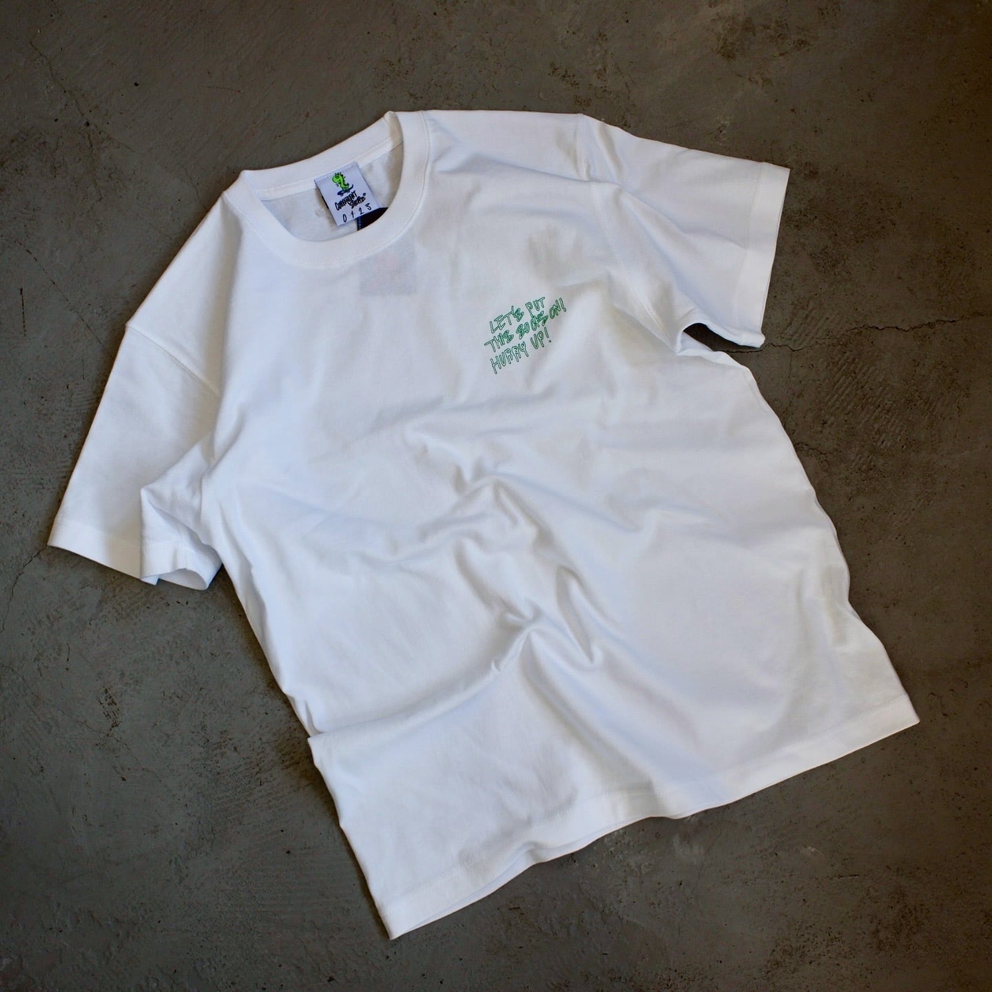 左胸にはタグで使用した " LET'S PUT THIS SOCKS ON !HURRY UP !" をプリント。