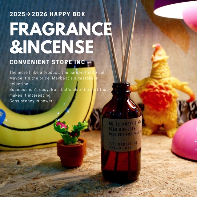 年末年始先行特別企画!第一弾! FRAGRANCE&INSENSEが沢山入ったHAPPY BOX 合計金額¥20,000-以上の商品が数量限定で¥12,000-のお得なセットに。 内訳はこちら。 ・DIFFUSER 1つ ・FABRIC MIST 1つ ・INCENSE(お香) 5種類 ・送料無料 香りもの好きはこの機会にお買い求め下さいね。 どれも素敵な香りで自信を持ってオススメします。 年末年始、お家で過ごす際に是非良い香りで過ごして下さいね。 その他のその他商品はこちら。 https://shop.convenient-store.jp/categories/4499179